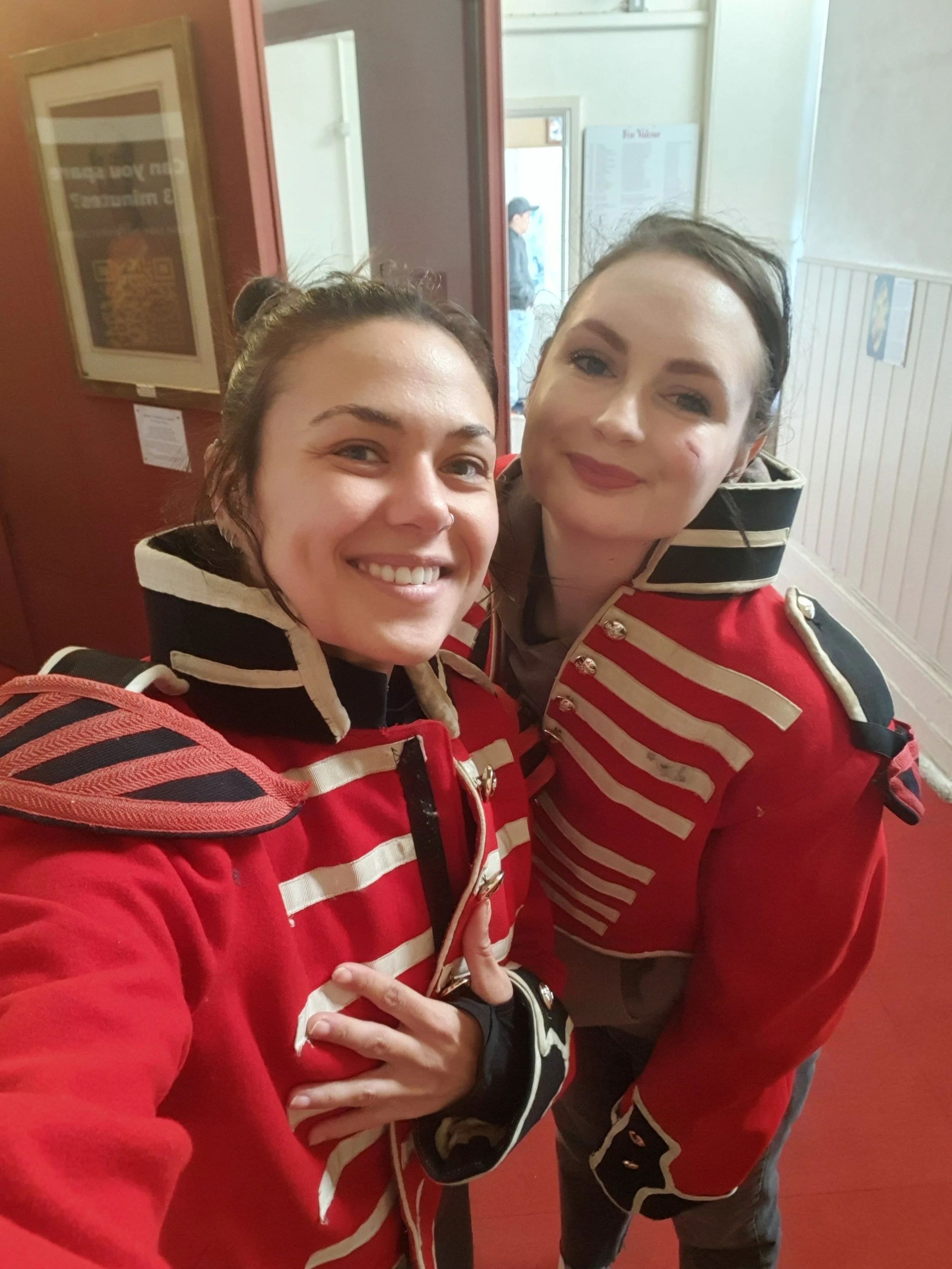 As we were leaving the kitchen we saw a lady dressed up in full medieval garb pretending to stir one of the display pots. Both Amy and I turned to each other thinking it was so strange to have an actor in the kitchen but nowhere else in the castle. Why just one section? But as we left, we saw the rack of dressing up clothes for visitors. Shortly after, the lady came over with the dress around her waist ready to take off. This gave us full confidence to dress up ourselves. Not right there in medieval clothes, but in soldier uniforms when we visited the Princess of Wales's Royal Regiment and Queen's Regiment Museum.